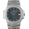 - 30年以上前にパテックフィリップ初の本格スポーツウォッチとして誕生した“ノーチラス”。オリジナリティあふれるオクタゴン(八角形)のケースフォルムは、各辺が緩やかなカーブを描き、全体が洗練されたクラシックな形をつくり出しています。こちらは、ノーチラスならではの水平エンボス加工文字盤に深みのある青文字盤が非常にエレガントな一本。ホワイトゴールドケースにダイヤモンドを組み合わせたラグジュアリーな仕上がりです。