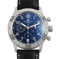 - フランス軍の航空部隊用として開発された“タイプXX(トゥエンティ)”を現代風にアレンジした“トランスアトランティック”。ケースサイドにはブレゲの伝統を物語るコインエッジを採用し、調和の取れたスタイリッシュなデザインに仕上がっています。フライバッククロノグラフを搭載しており、上品なディテールを備えながらも、日常使いに耐えうるタフネスさも備えているため、オンオフを問わず活躍してくれるオールマイティーなモデルです。100m防水。