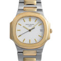 - 30年以上前にパテックフィリップ初の本格スポーツウォッチとして誕生した“ノーチラス”。オリジナリティあふれるオクタゴン型(八角形)のケースフォルムは、各辺が緩やかなカーブを描き全体が洗練されたクラシックな形をつくり出しています。こちらは既に生産終了したコンビモデルです。サイズはボーイズサイズで、ムーブメントはクォーツ。年々入手が困難になってきており、希少性が高まっています。