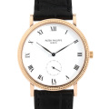 - 発売から約十年に渡りパテックの顔として広告イメージにも採用され、惜しまれながらも2006年頃に製造が終了したモデルです。発売当時は海外で絶大な人気を誇ったモデルですが、生産が終了した現在では日本での人気も高まってきております。鋲打ち模様と言われるホブネイルパターンのベゼルが、クラシカルでありながら高級感あるデザインです。柔らかな色合いのピンクゴールドは、日本人の肌の色に最も良く似合う素材です。 ※こちらは、ジョイント式リューズを使用したモデルになります。リューズを強く引っ張ると抜けてしまう事がございますが、構造上の特性によるもので、故障ではございません。