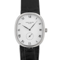 - ヨーロッパの古典建築や絵画において理想的なプロポーションとされる「黄金分割法」に基づいてデザインされた「ゴールデンエリプス」。ピュアで大胆なそのフォルムは、パテックフィリップを代表するモデルの一つです。楕円のケースとシンプルな文字盤の組み合わせは着ける人を選ばない1本です。