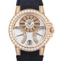 - トップジュエラーとしての気品あるデザインに基づき設計・製造された”オーシャン”コレクション。6時位置に日付、3時位置に曜日、9時位置に秒針を備えています。ローズゴールドケースにホワイトシェルを配し、さらにダイヤモンドをあしらうことで、ジュエリーメーカーらしいエレガントなイメージに作り上げています。レディースモデルですが36mmと少し大きめのためユニセックスとしても使える1本です。