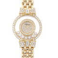 - ケース上下のリボンがチャームポイントになっている“ハッピーダイヤモンド・リボン”。 こちらはベゼルとラグにダイヤをセットした華やかなモデルです。 2重サファイアクリスタルの間をムービングストーンのダイヤモンドが動き美しく煌めくのもショパールならではです。