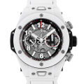 - 人気モデル“ビッグバン・ウニコ”の素材にホワイトセラミックを採用した2016年発表モデルが入荷しました。ムーブメントは自社製フライバック機能付きキャリバー“UNICO1242”を搭載。パワーリザーブ72時間に対応、防水性100m。ダイアルがスケルトンになっているため、表裏両面からムーブメントをご覧頂けます。