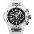- 4年もの歳月をかけて生み出された、ウブロの力作・ウニコムーブを搭載した2017年新作が入荷しました。こちらはコラムホイール式フライバッククロノグラフを搭載、約72時間のロングパワーリザーブを誇ります。内部もさることながら、ケースにはサファイアクリスタルが備わり、耐久性・耐衝撃性のみならず唯一無二の洗練されたデザインを獲得しました。100m防水を備え実用性も抜群の一本となっております。