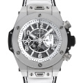 - ウブロの大ヒットモデルビッグバンの10周年を記念した日本限定モデルです。ムーブメントには完全自社製のウニコムーブメントHUB1242を搭載。ケースにはチタン、外観はホワイトを基調とした爽やかなカラーリングとなっており、独創性と美観を両立しております。パワーリザーブ約72時間、10気圧防水と、実用面に優れることも特筆すべき点です。