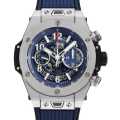 - 軽量で強靭な素材チタンを使用したビッグバン ウニコ チタニウムの2018年発表モデルです。ブルーをメインカラーとしており、ブルースケルトン文字盤にブルーラバーが統一感のあるお洒落なデザインです。裏蓋もシースルーバックになっており、72時間パワーリザーブを誇る自社製ムーブメントウニコ(Cal.HUB1242)の動きを裏と表の両面から楽しむことができます。柔軟性の高いラバーストラップを採用し、アグレッシブにお使い頂ける一本に仕上がっています。10気圧防水