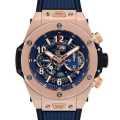 - ウブロ独自の合金で、通常のレッドゴールドよりも色味が深く、変色しにくい特性を持つキングゴールドを使用しています。ムーブメントの動きが見える構造で、機械式時計の魅力を最大限に引き出すスケルトンダイアルとなっております。文字盤・インナーサークル・ストラップがブルーで統一され、視覚的にも美しい1本です。