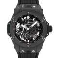 - ウブロ渾身の自社製手巻きキャリバーHUB1201搭載の2016年発表モデルが入荷しました。シースルーとなったケース表裏から美しい姿を垣間見せるこのムーブメントは、ツインバレル式によって10日間ものロングパワーリザーブを実現しています。6時位置のパワーリザーブインジケーター、そしてパワーリザーブ残量が3日になると徐々に3時位置を赤色にする特殊機能も必見。100m防水と、実用性も抜群です。※搭載キャリバーHUB1201は手巻きですが、巻き止まりのない仕様となっております。
