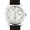 - 時針と分針が同軸上にない、複雑なレギュレーター機構を搭載した時計です。レギュレーターとデュアルタイムの組み合わせは珍しいのではないでしょうか。6時位置にはポインターデイトも備えています。裏蓋は開閉式になっており、美術工芸品の域に達する美しいムーブメントをご覧頂けます。
