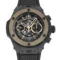 - セラミックケースにウブロが開発したマジックゴールド製ベゼルを合わせたモデルです。マジックゴールドはゴールドとセラミックを融合した18K素材で、一般的な18Kゴールドの2倍以上傷が付きにくい新素材です。HUB1280 自動巻きクロノグラフ搭載。パワーリザーブは約72時間。