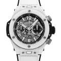- 人気モデルビッグバン・ウニコの素材にホワイトセラミックを採用したスポーティーで上品なモデルが入荷しました。ムーブメントは自社製フライバック機能付きキャリバーHUB1280を搭載。こちらは前モデルのユニークな構造はそのままに、1.3mmの薄型化と自動巻きシステムのフラット化を実現しました。10気圧防水。パワーリザーブ72時間。