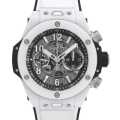 - 人気モデルビッグバン・ウニコの素材にホワイトセラミックを採用したスポーティーで上品なモデルが入荷しました。ムーブメントは自社製フライバック機能付きキャリバーHUB1280を搭載。こちらは前モデルのユニークな構造はそのままに、1.3mmの薄型化と自動巻きシステムのフラット化を実現しました。10気圧防水。パワーリザーブ72時間。