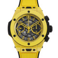 - イエロー・セラミックをケースに採用した限定生産250本のリミテッドモデルです。フライバック機能が付いており、クロノ作動時に4時位置のリセットボタンを押すだけで、ゼロリセット&リスタートを行なってくれます。ムーブメントにはウブロが4年の歳月をかけて開発したクロノグラフムーブメントウニコを搭載しております。