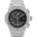 - 時計業界にまさに「ビッグバン」を起こした名作誕生から15周年、新型モデルがリリースされました。ビッグバンと言えばラバーベルトの印象が強いかもしれませんが、こちらはブレスレットとケースを一体化させたインテグラル―完成された―仕様。近年トレンドの一つとなっているラグジュアリー・スポーツウォッチを彷彿とさせる佇まいです。素材にチタンをあしらうことで、軽やかな装着感をも実現しました。搭載するムーブメントはウブロ渾身のマニュファクチュールキャリバーHUB1280、その名もウニコ。他のビッグバン ウニコ同様にスケルトナイズされた文字盤からは、その美しい仕上がりを鑑賞することが可能です。パワーリザーブ約72時間。100m防水。2021年発表。なお、こちらはヨシダ限定モデルです。