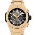 - ウブロの代表作"ビッグバン"誕生15周年を迎えた2020年、新たにインテグレーテッドブレスレットを採用した"ビッグバン インテグラル"が登場しました。こちらは、2022年に発表されたイエローゴールドモデルです。ケースから一体化するようにデザインされたブレスレットは、"ビッグバン"特有の力強いフォルムを継承しつつ、イエローゴールドにサテン仕上げを施すことで、スポーティさとドレッシーな印象を見事に両立しています。スケルトンダイアルを採用しているため、シースルーバックだけでなく文字盤側からも自社製「UNICO」ムーブメントの精緻な動きを堪能可能。ウブロならではの革新性と存在感を存分に味わえる一本です。