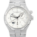 - ヴァシュロンのスポーツラインとして人気のオーヴァーシーズ。こちらは発売10周年を記念したデュアルタイム機能搭載モデルです。2時位置にポインター式デイト、6時位置にデュアルタイム、7時位置にナイト&デイ、10時位置にパワーリザーブ表示と多くの機能を備えています。