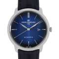 - 「1966」はヌーシャテル天文台100周年記念賞を受賞した、ジラール・ペルゴの時間計測の分野における技術的先進性にオマージュを捧げ、1960年代に発表されたデザインの精神を受け継ぐモデルです。こちらは「アース・トゥ・スカイ」のコンセプトによって生み出され、大気圏の最も外側の外気圏をイメージした美しいグラデーションのサンレイブルーダイアルは深く広い宇宙を思わせます。ムーブメントにはキャリバーGP03300を搭載。パワーリザーブ約46時間。防水性30m。