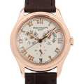 - ローズゴールドケースに S QA 24Hを搭載したコンプリケーションウォッチです。搭載している年次カレンダーは毎年3月1日に日付修正をするだけで、あとは日付を修正する必要がありません。3時位置に月、6時位置に24時間表示と日付、9時位置に曜日表示を備え、ケースサイドのプッシュボタンを押すことで簡単に操作できます。