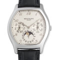 - パテックフィリップを代表するコンプリケーションモデル「パーペチュアルカレンダー」。2008年に生産終了したこちらの時計は、アール・デコ時代を思わせる流麗なケース形状にブレゲ針とブレゲ数字を配した希少モデルです。ムーブメントには273個もの部品によって構成される名キャリバー240Qを搭載。歴史あるPATEK PHILIPPEの威厳を感じる逸品を是非ご堪能ください。