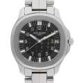 - 凹凸のある格子状の黒文字盤、独特なデザインの3連ブレスレット、緩やかなカーブを描いたオクタゴン型(八角形)のフォルムが特徴的なモデルです。ムーブメントには2アーム式テンプにジャイロマックスを8個搭載した自動巻きを採用しており、その美しい動きをシースルーバックからご覧頂けます。