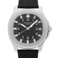 - 「スポーツ・エレガンス」をテーマに誕生したコレクションアクアノート。凹凸のある格子状の黒文字盤、緩やかなカーブを描いたオクタゴン型(八角形)のフォルムが特徴的なモデルです。ムーブメントには2アーム式テンプにジャイロマックスを8個搭載した自動巻き/190を採用しており、その美しい動きをシースルーバックからご覧頂けます。