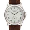 - 生産数が限られた希少なエナメルダイアルにローマ数字が手書きされた、エレガントなカラトラバの入荷です。鋲打ち模様と言われるホブネイルパターンのベゼルが、クラシカルでありながらも高級感溢れる印象を与えます。伝統に裏付けられた芸術品とも云えるデザインと最高の水準を誇る高い技術は、本物を求める方に最適の逸品です。