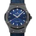 - ウブロが掲げるフュージョンコンセプトとクラシックシリーズが融合して誕生した“クラシック・フュージョン”。文字盤はサテン仕上げのブルーサンレイダイヤル。ケースとベゼルにはブラックセラミックを採用。ムーブメントにはHUB1112を搭載。パワーリザーブ42時間。5気圧防水。