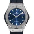 - ウブロが掲げるフュージョン・コンセプトとクラシックシリーズが融合して生まれたクラシックフュージョン。様々なバリエーションがありますが、こちらは2015年にカラーラインナップに加わったブルー文字盤です。シンプルなデザインのためビジネスはもちろん、カジュアル、フォーマルまで洋服を選ばず装着できます。