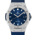 - ウブロが掲げるフュージョン・コンセプトとクラシックシリーズが融合して生まれた“クラシックフュージョン”。様々なバリエーションがありますが、こちらはブルー文字盤です。シンプルなデザインのためビジネスはもちろん、カジュアル、フォーマルまで洋服を選ばず装着できます。パワーリザーブ42時間。
