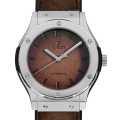 - ウブロが掲げるフュージョン・コンセプトとクラシックシリーズが融合して生まれたクラシック・フュージョン。シンプルなデザインのためビジネスはもちろん、カジュアル、フォーマルまで洋服を選ばず装着できます。イタリアで生まれたアレッサンドロ・ベルルッティがフランス パリにて創業した至高のレザーブランド「ベルルッティ」とのコラボレーションモデル。こちらはプラチナを使用した世界100本の希少なリミテッドモデルです。