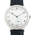 - 「時計の進化を200年早めた男」として有名なアラン・ルイ・ブレゲの意匠を盛り込み、時代に合うようアレンジされたモデル「クラシック」。ブルースティールの針、ケースサイドのコインエッジ、職人が1本1本手作業で彫り込んだギョーシェなど、パーツ一つ一つが非常に繊細で、職人の誇りを感じさせる逸品です。
