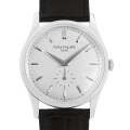 - ドルフィン型の時分針に砲弾型の植字インデックス、そして6時に配置されたスモールセコンドは、往年の人気モデル“クンロク”を彷彿とさせます。昨今の時計界の時流に乗り、直径37ミリと大型化されたケースが特徴的で、手巻式の現行カラトラバの中では最も大きなケースサイズです。ごくシンプルなモデルで時代を問わずご愛用いただける、最もパテックらしさを表しているシリーズです。 キャリバーにはCal.215 PSを搭載しています。