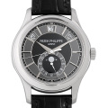 - パテックフィリップの2010年発表モデル、年次カレンダーを搭載したRef.5205の入荷です。月、日、曜日を文字盤上部に配置したデザインはRef.5960を踏襲したものです。従来のモデルと一線を画すスケルトン加工を施したケースが特徴で、ホワイトゴールドのケースに独自性を与えています。ムーブメントには1996年特許取得済みとなるCal.324を搭載しています。