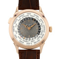- 世界を飛び回る旅行者のために製作された時計“ワールドタイム”。こちらは2016年に発表された「コンプリケーション」です。10時位置のプッシュボタンを押すだけで文字盤上の都市名外周リング、24時間表示の内周リング、ローカルタイムを示す時分針が操作され、ローカルタイムと世界24都市の時間を同時に表示することが出来ます。10年ぶりのモデルチェンジにより、ラグやケースの形状、針が大きく変わりました。ケースはローズゴールドを使い、デザインと実用性を兼ね備えています。自動巻きCal.240HUを搭載。