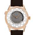 - 世界を飛び回る旅行者のために製作された時計ワールドタイム。こちらは「Ref.5130」の後継モデルとして2016年に誕生したモデルです。Ref.5130からケースやベゼル、針などのデザインが一新され、ケースサイズも一回り小さくなりました。ケースにはローズゴールドが使用されており、デザインと実用性を兼ね備えています。