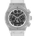 - 人気が高いクラシック・フュージョンのダイアルがスケルトン仕様になったアエロフュージョンです。文字盤には透明度の高いサファイアガラスを使用し、精巧なムーブメントの動きをじっくりとご堪能いただけます。チタンケースの為軽く装着感も良い時計です。その名の通り、白いベルトが爽やかなこちらは日本限定商品になります。