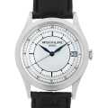 - ジュネーブの時計メーカーで唯一、すべての機械式ムーブメントにジュネーブシールを与えられているパテック・フィリップ。その中でも代表的なモデルがこちらのカラトラバ。このモデル名は、中世スペインの宗教騎士団がムーア人の攻略から守ったカラトラバ砦に由来すると言われています。38mmホワイトゴールド製ケースとブルースティール針の組み合わせが端正でビジネスシーンで映えそうな一本です。