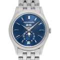 - 曜日、月、日付を窓表示にすることで視認性を高めています。モデルチェンジによりリニューアルされたダイヤルはシンプルになり落ち着きのあるデザインになりました。青文字盤にホワイトゴールドの上品な輝きも高級腕時計としての貫録を感じさせます。