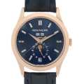 - こちらはローズゴールドのケーズにアニュアルカレンダームーンフェイズを搭載したモデルです。搭載している年次カレンダーは毎年3月1日に日付修正をするだけで、あとは日付を修正する必要がありません。パワーリザーブ表示と超高精度なムーンフェイズ表示を加えて進化し、パテック・フィリップのフラグシップモデルのひとつとなりました。エレガントな時計をお探しの方にお薦めしたい逸品です。