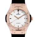 - ウブロが掲げるフュージョン・コンセプトとクラシックシリーズが融合して生まれたクラシックフュージョン。様々なバリエーションがありますが、こちらはオパリンシルバー文字盤を採用し、素材にはキングゴールドを使用しております。シンプルながらもおしゃれさが際立つ腕時計です。