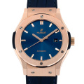 - ウブロが掲げる”フュージョン・コンセプト”と”クラシックシリーズ”が融合して生まれたクラシック フュージョン。今までのクラシックシリーズに比べてケースが大型化。ビッグバン譲りの迫力と、薄いケースから漂う端正でエレガントな雰囲気を両立したモデルです。ウブロ独自のキングゴールド素材がベゼルやプッシャーにあしらわれており、華やかな印象を醸し出します。