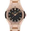 - ウブロが掲げる"フュージョン"コンセプトと"クラシック"コレクションが融合して生まれた"クラシック フュージョン"。ケース素材として用いられているキングゴールドは、レッドゴールドに約5%のプラチナを配合したウブロ独自の素材です。ゴールドケースでは避けられない経年変化による変色が起こりにくくなっています。こちらは、ラグジュアリー感漂う色味と33mmという小ぶりなサイズが可愛らしいモデルです。