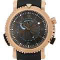 - フランス海軍のマリン・クロノメーター(航海用精密時計)の製造者としてアブラアン・ルイ・ブレゲが築きあげた偉大な遺産からヒントを得た"マリーン"ウォッチ。こちらのマリーンロイヤルはアラーム機能を搭載したダイバーズモデルです。10時位置にアラームチャイムのパワーリザーブがあるため、一目で残量が確認できます。また、8時位置のボタンでアラームのオン/オフの切り替えが可能で、12時位置の音符のマークで状態を表示します。このアラームは水中で操作することもでき、驚くべきことに地上より大きな音で時を知らせるそうです。300m防水。