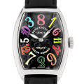 - 2004年に発表され、革新的なデザインで業界の話題を独占した”カラードリームコレクション”。その中の 「本来12時の位置にある数字が8時!?」1時間毎に時針が150度ジャンプする「ジャンピングアワー機能」が付いたクレイジーウォッチです。生きる喜びをそのまま表現したいと考えていたフランクミュラーは、この世で最も美しいビーチで戯れ、笑い声を響かせていた若い男の子や女の子にインスピレーションを得てこの時計を創りました。黒文字盤に色とりどりのアラビア数字が優雅に描かれており、フランクミュラーらしい個性溢れるデザインに仕上がっております。