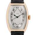 - フランクミュラーの中でも特に傑作と評価される"トノーカーベックス"。こちらは、流れるように美しく湾曲したピンクゴールドケースに、精緻なギョーシェ彫りのシルバーダイアルが特別な雰囲気を醸し出しています。