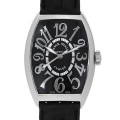 - ギョーシェが施された黒文字盤に、シルバーカラーのレリーフインデックスを組み合わせた美しい時計です。文字盤を裏側から叩いて数字の形を浮かび上がらせるというフランクミュラー独自の手法で、中央に配されたオーバル型のレイルウェイと美しく調和させています。
