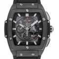 - トノー型ケースが特徴的な「スピリット・オブ・ビッグバン」。ダイヤルとケースバックがシースルーになっているため、その精密な動きをご覧頂けます。ケース径51mm×45mmのビッグケースですが、素材にセラミックを使用しているので、装着しやすい重量感になっています。