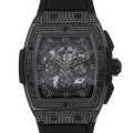 - 「スピリット オブ ビッグバン オールブラック」の2017年モデルが入荷致しました。こちらはケース素材にセラミックを使用し、ケース、ベゼルにブラックダイヤを配したラグジュアリーなモデルです。ムーブメントはゼニスと共同開発を行い、名機エル・プリメロをベースに開発されたHUB4700を搭載しています。パワーリザーブ50時間。100M防水。