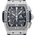 - トノー型ケースが特徴的な「スピリット・オブ・ビッグバン」。ダイアルとケースバックがシースルーになっているため、その精密な動きをご覧頂けます。エル・プリメロをベースにしたムーブメントHUB4700を搭載したモデルです。パワーリザーブ50時間。100m防水。